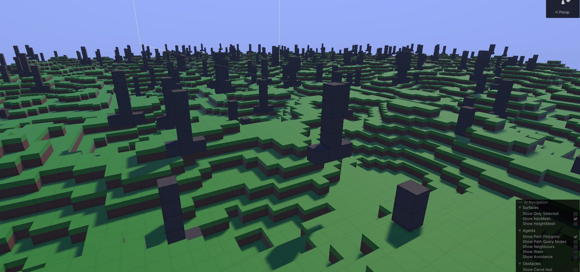 In my last devlog, I mentioned wanting help from artists. Upon release, I was pleasently surprised to find out two things: first, there was in fact an artist who wanted to help (UnusualOranges); and second, people actually read my devlogs. So, I was blessed with a whole load of new textures that truly took the visual direction leaps and bounds ahead of where it was. In the end, I had new textures for grass, dirt, wood, leaves, all of which actually had two versions so I could later add the option for different map 'styles', e.g summer/winter. With these, I finalized the updates to the world generation by creating a tree, and setting it up to be spawned throughout the world.